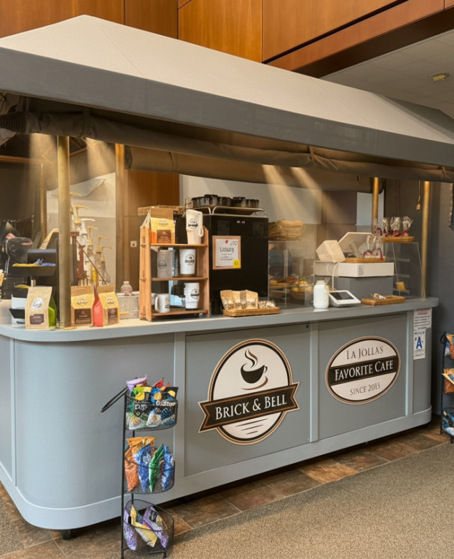 Situated inside the XIMED building, within the Scripps Memorial Hospital La Jolla complex, this Brick & Bell Cafe brings the brand’s signature charm into a healthcare setting. It’s the perfect place for patients, visitors, or hospital staff to take a pleasant break with quality coffee, fresh scones, or a light meal. With a friendly team and efficient service, the Ximed location offers a variety of coffees, cold drinks, sandwiches, salads, and snacks all with the same handcrafted quality that defines Brick & Bell. Ideal for visitors as well as healthcare professionals and students looking for a quick energy boost or a peaceful spot to relax.